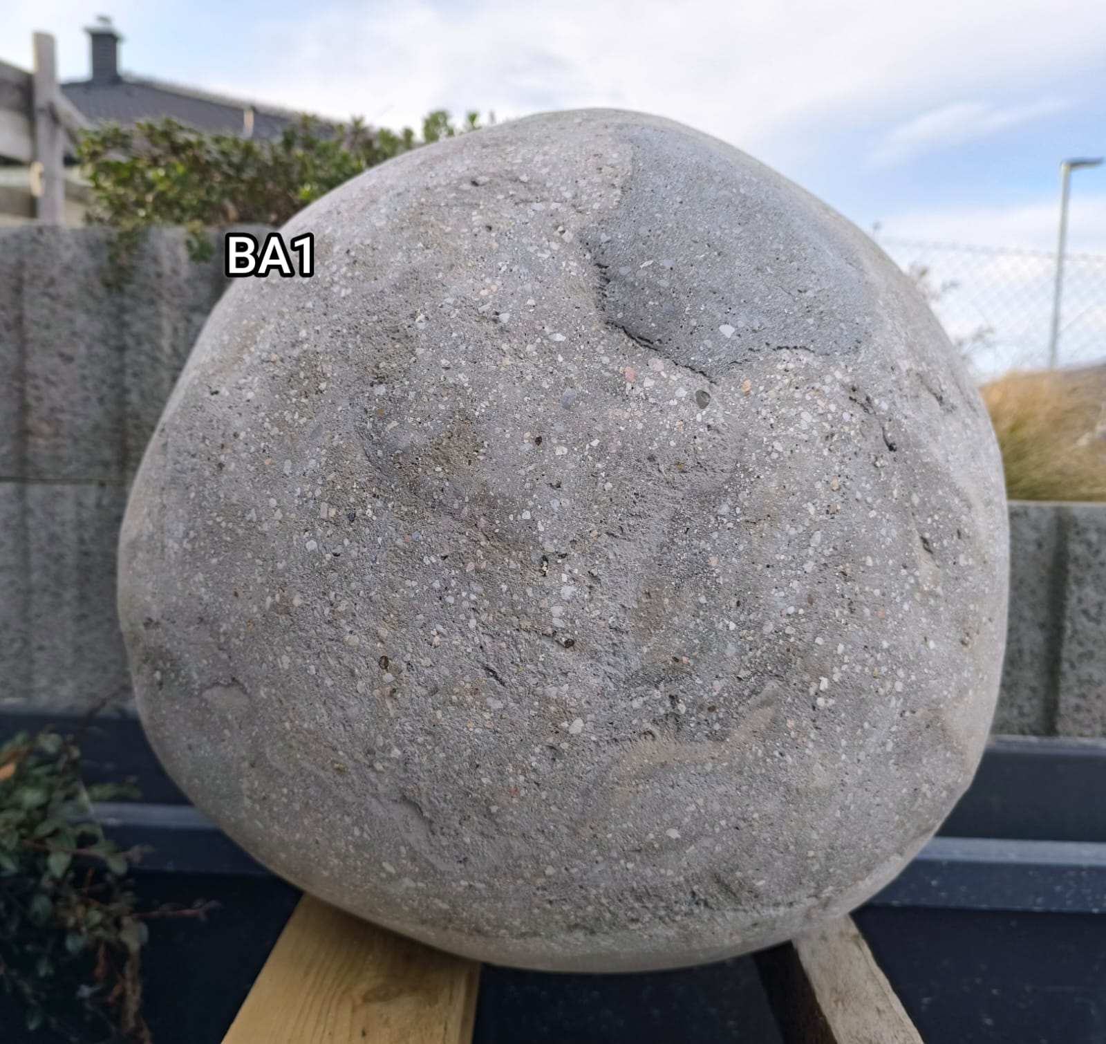 Betonový balvan - dutý , velikost pr. cca 450 mm, váha + - 30 kg, přírodní barva