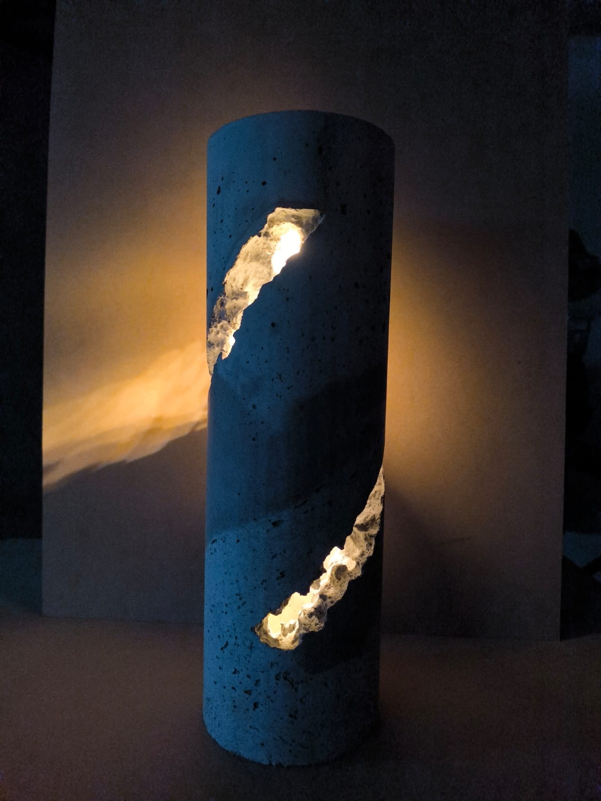 Solární betonová lampa pr. 150 mm x 460 mm, žíhaná barva, osazená solárním systémem Rabalux 60 lm, se soumrakovým senzorem